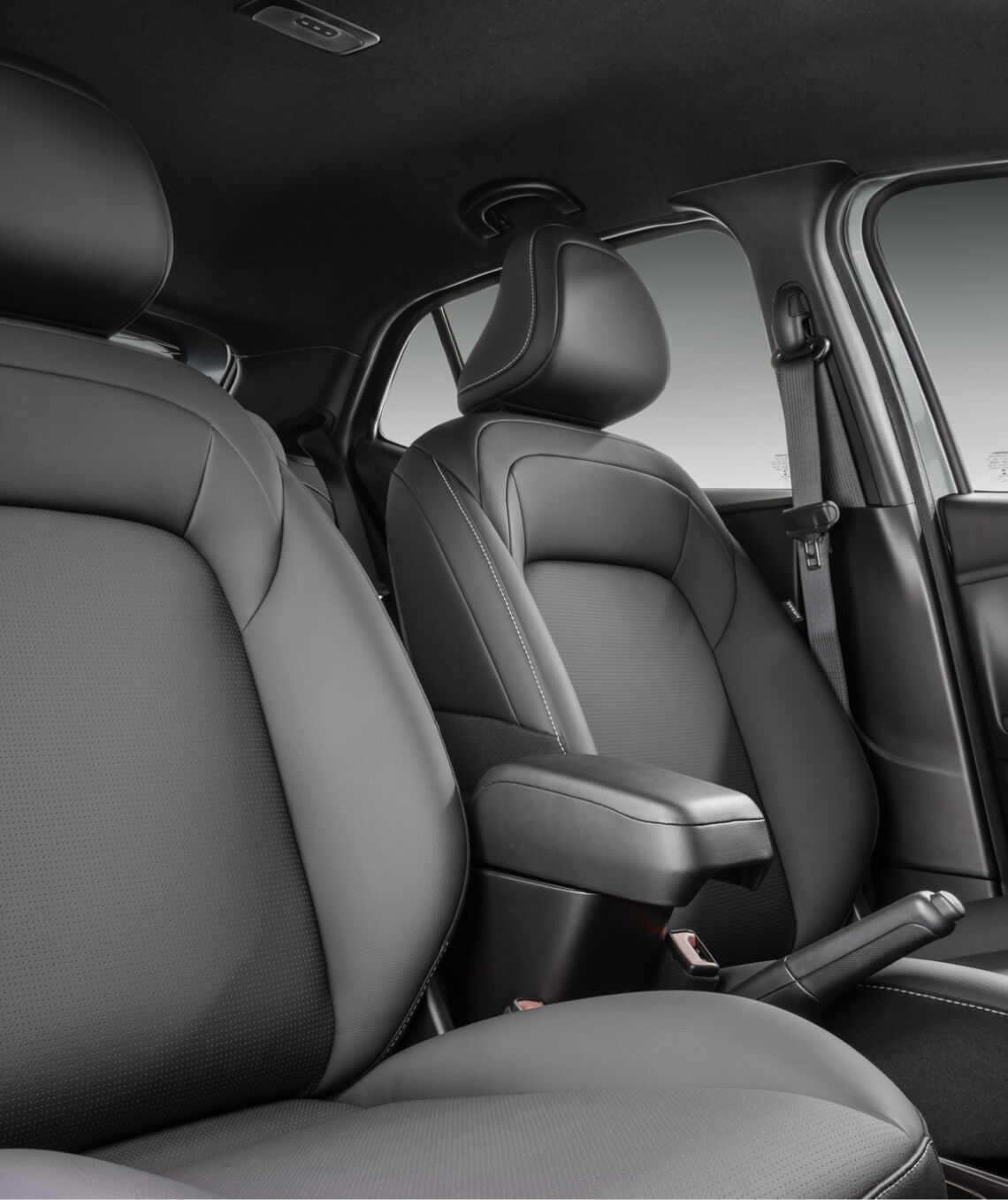 Los asientos tapizados en cuero, con perforaciones en el respaldo y costuras visibles en los laterales, aportan todo el confort, sofisticación y tecnología que te mereces.
